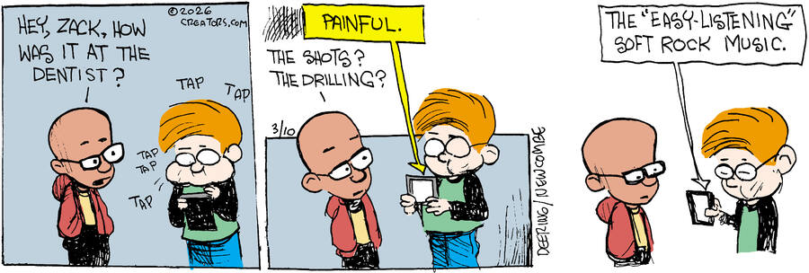 The comic appears in over 20 major newspapers, including the Chicago Sun-Times, the Seattle Times, the Philadelphia Daily News and the Buffalo News. Zack Hill is currently being developed into an animated TV show by TV writer Will Schifrin (Fraser) and producer Prudence Fenton (Pee Wee's Funhouse). Zack Hill is also being adapted into a musical by Werner Trieschmann and Tom Tierny (Eleanor). Zack Hill can be seen every day on seattletimes.com or Comics.com.